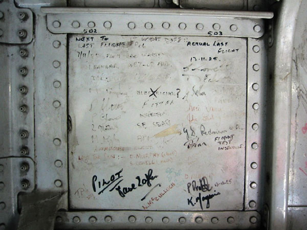 Signatures detailing last flights of P.06/XX948, courtesy of Everett Aero