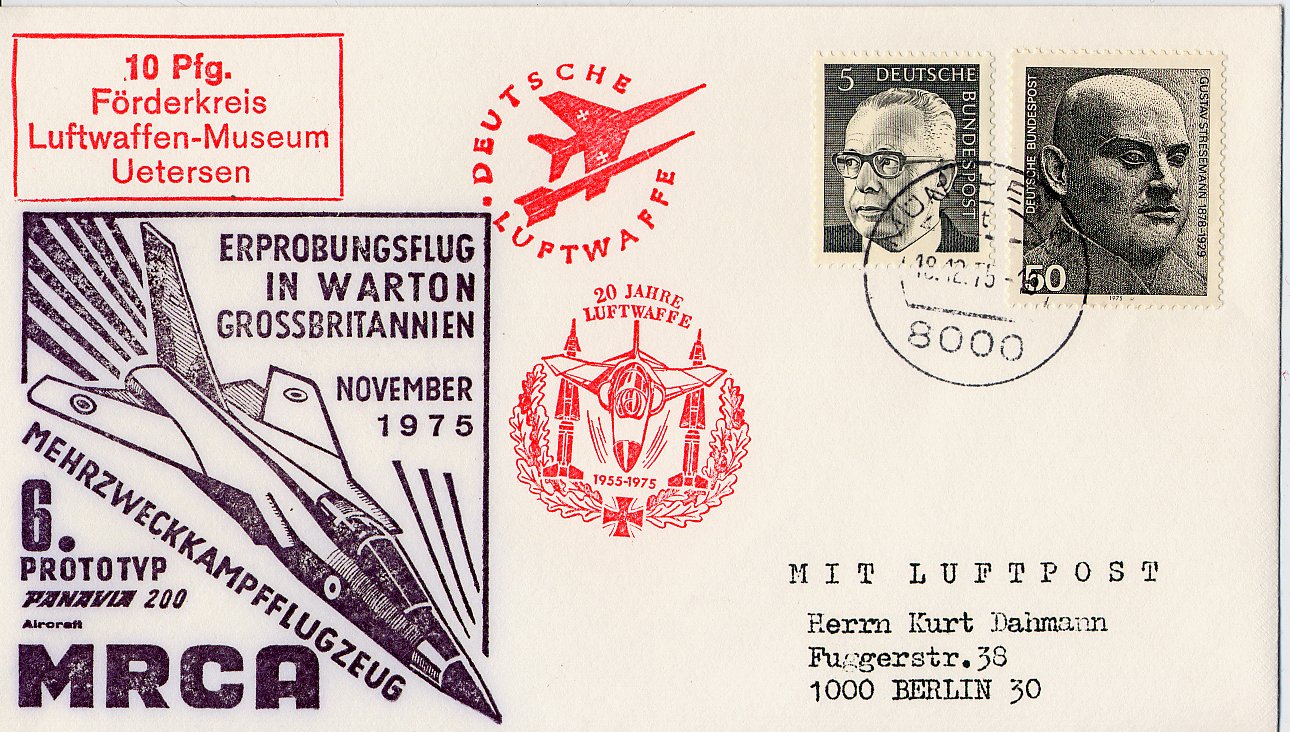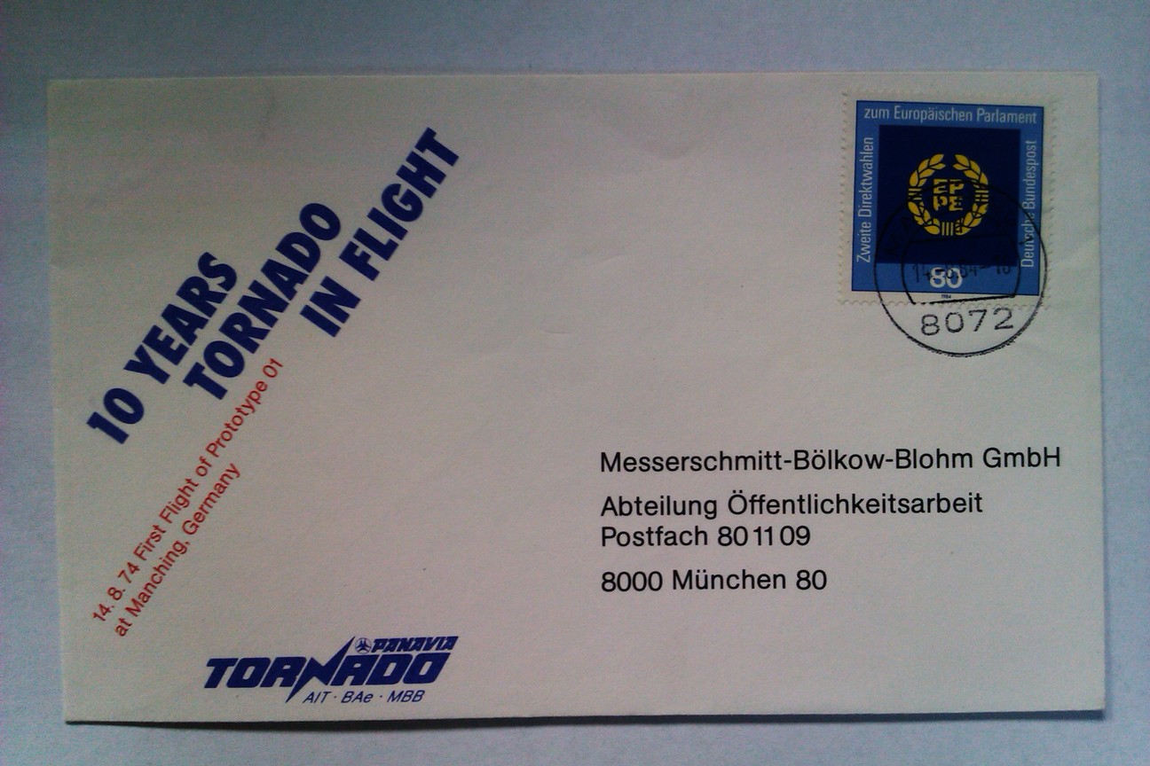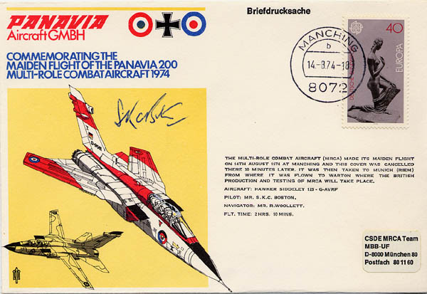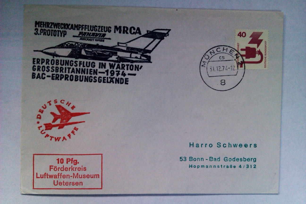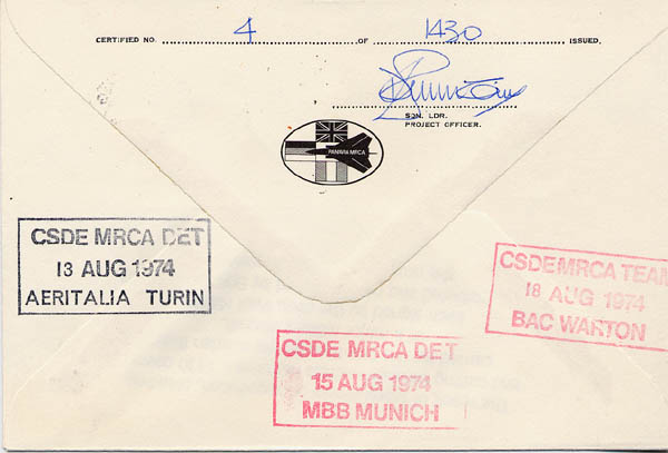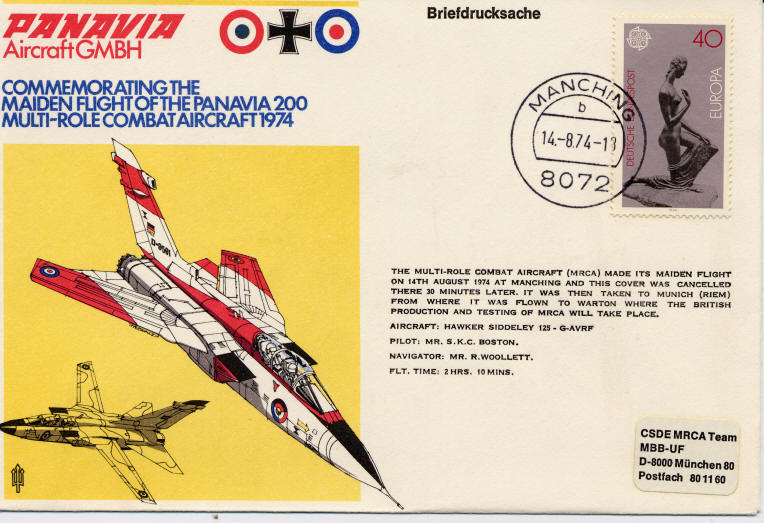 day cover produced to commemorate the first flight of the Tornado/MRCA.