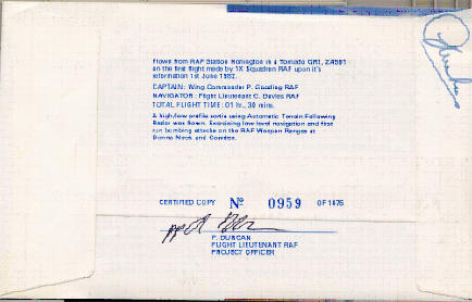 Signed by Tornado Flight Operations Director - Roland 'Bee' Beaumont.