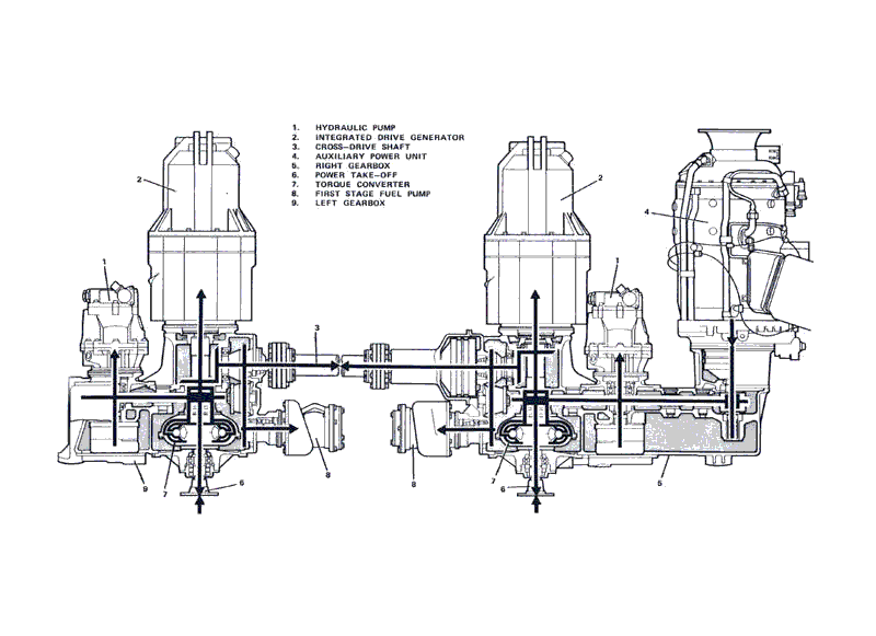 The secondary power system (SPS) comprises of two airframe mounted main gearboxes driven by its retrospective engine or the auxiliary power unit (APU). The gearboxes are connected by a cross drive shaft to enable either engine can be started by the APU. This also allows each engine to drive both gearboxes in emergencies. Each gearbox drives a hydraulic pump, an integrated constant speed drive an electrical generator and a fuel pump. the starboard gearbox also carries the APU. The APU is a small gas turbine engine which draws fuel from the engine supply system. The APU can be started from the aircraft battery and used for ground maintenance purposes or to start the main engines. The APU also Tornado to be operated and serviced in remote locations. It also allows also servicing without ground power units. Some advantages of this system, |